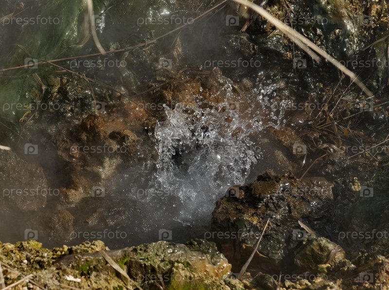 Россия. Курильские острова. Причудливыми безумными пузырями бурлят фумаролы у подножия спящего вулкана Барановский на острове Итуруп