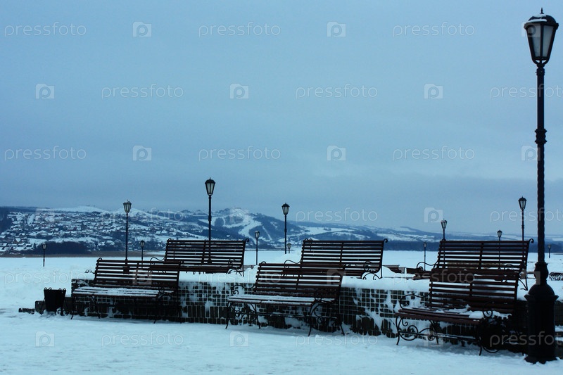 Скамейки на Рождественской площади в Свияжске, Татарстан
