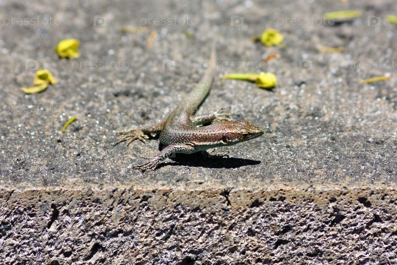 Ящерица на горячем камне в парке Санта-Катарина Фуншал, остров Мадейра, Португалия