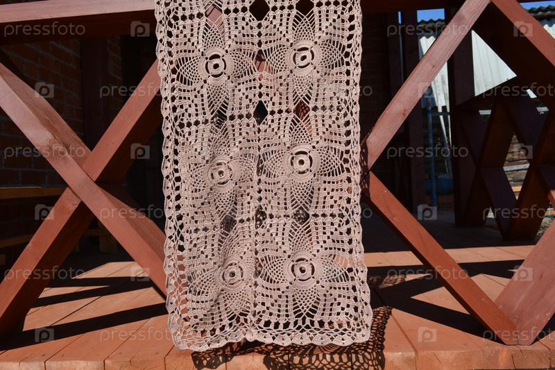 Палантин, связанный крючком из хлопчатобумажной пряжи кофейного цвета