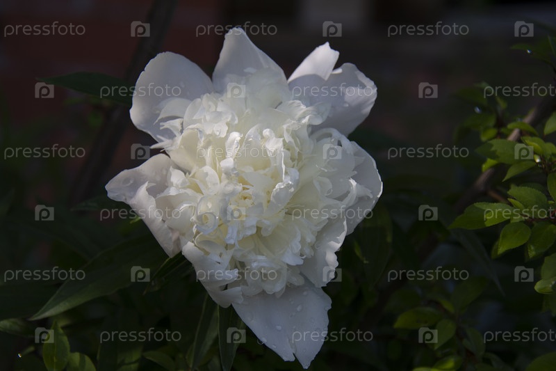 Красивый белый пион на темном фоне