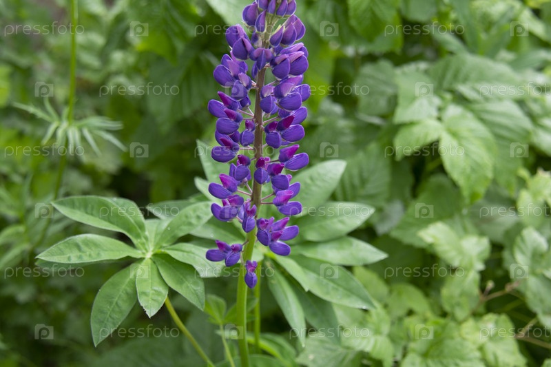 Фиолетовый люпин на фоне зеленых листьев