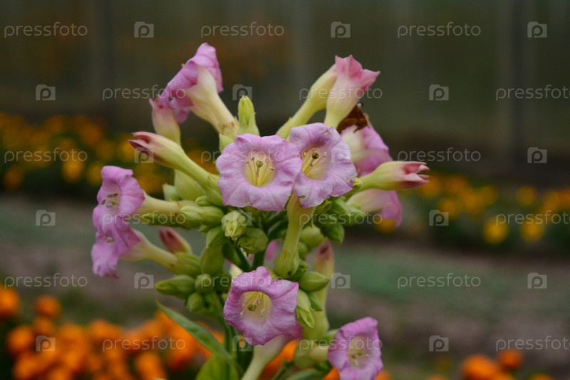 Розовые цветы табака на размытом фоне