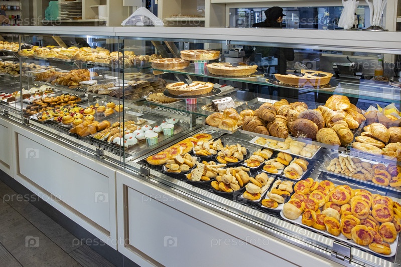 Италия. Казерта. Кондитерские изделия в витрине кафе. Италия. Caserta. Confectionery in the cafe window