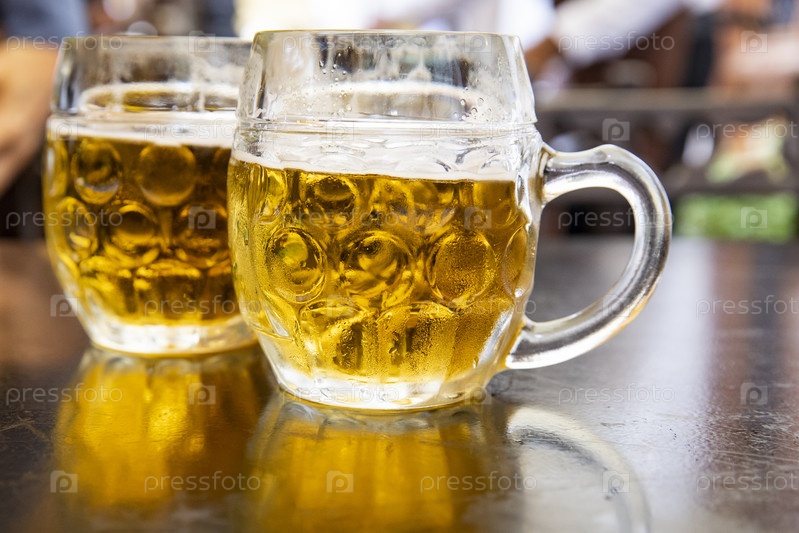 Румыния. Бухарест. Пиво в пивных кружках в ресторане. Румыния. Бухарест