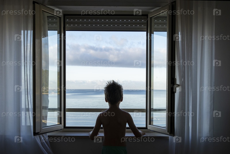 Италия.Минтурно.Ребенок перед окном с видом на море.Италия.Минтурно.Ребёнок перед окном, выходящим на море