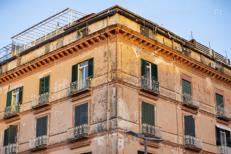 Италия. Кастелламмаре-ди-Стабия. Фасад старого жилого дома. Италия. Castellammare di Stabia. The facade of an old apartment building