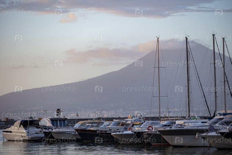 Италия. Кастелламмаре-ди-Стабия. Мачты яхт, пришвартованных в гавани. Италия. Castellammare di Stabia. Master of yachts moored in the harbor