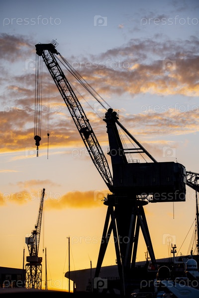 Италия. Кастелламмаре-ди-Стабия. Грузовые портовые краны в гавани. Италия. Castellammare di Stabia. Cargo port cranes in the harbor
