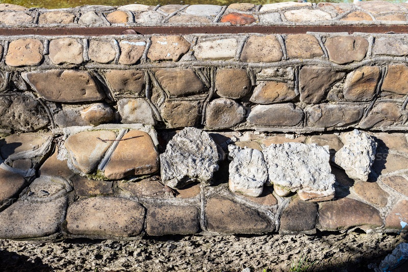 Дикие речные камни, падающие со стены в солнечный день