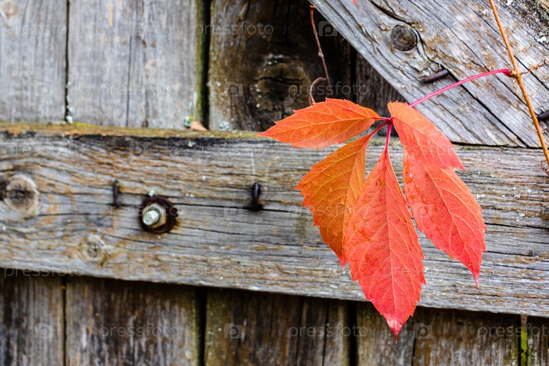 Красочные осенние листья на старых деревянных воротах