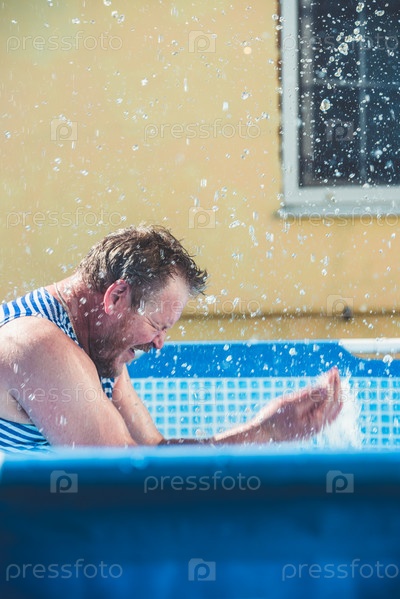 Мужчина с водой плещется в бассейне, тонизируя