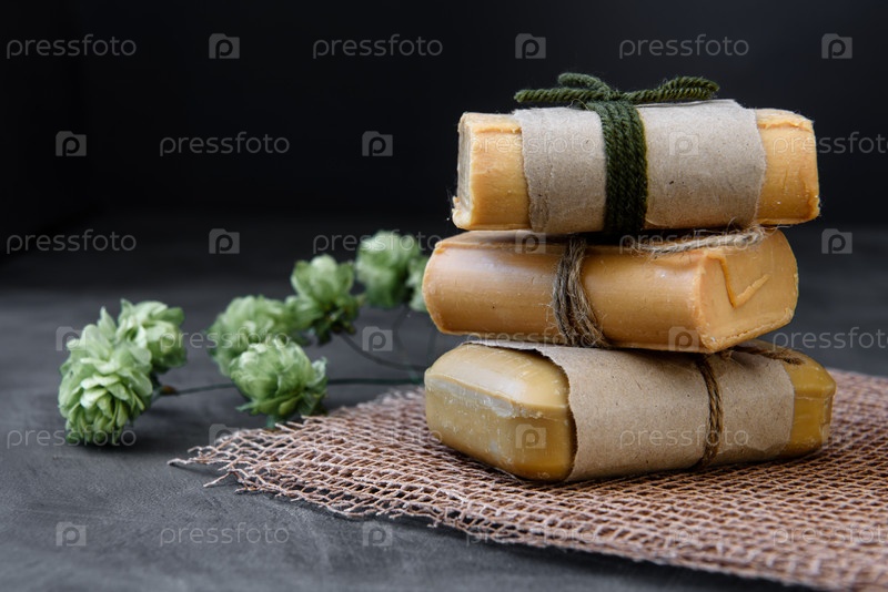 Куски хозяйственного мыла на темном фоне