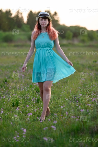 Красивая девушка в поле с цветами