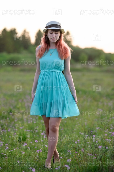 Красивая девушка в поле с цветами