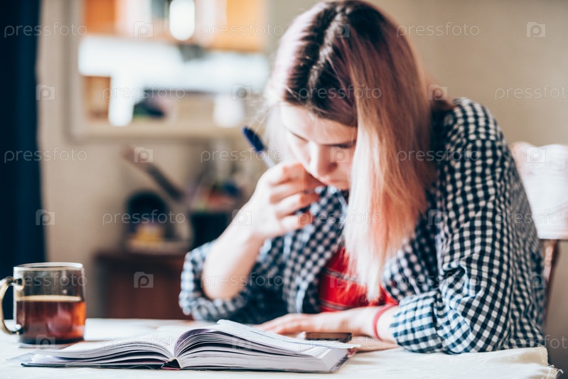 Девочка выполняет школьное задание на дому - дистанционное обучение во время пандемии коронавируса