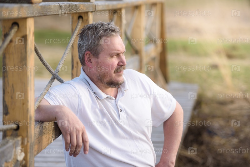 Красивый мужчина задумчиво смотрит вдаль летом на открытом воздухе