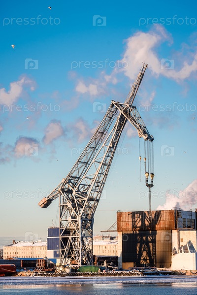 Портовый кран в солнечный зимний день