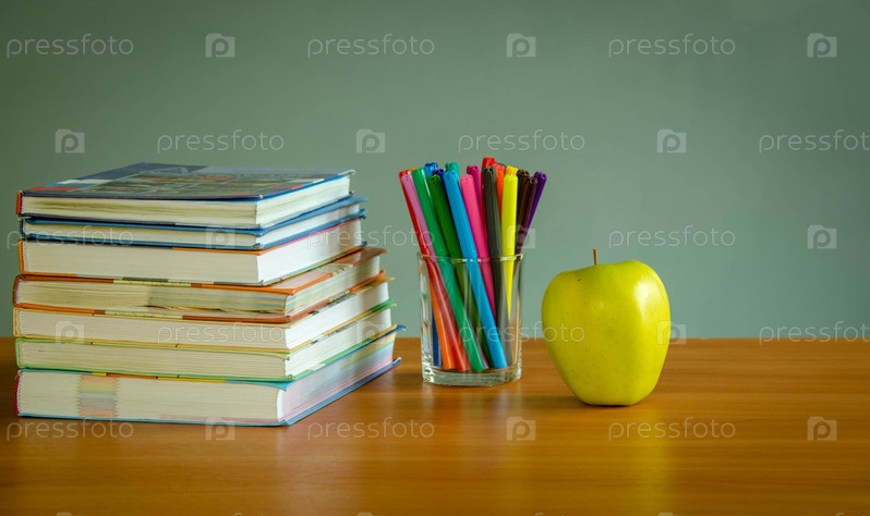 Школьная парта ученика и канцелярские принадлежности