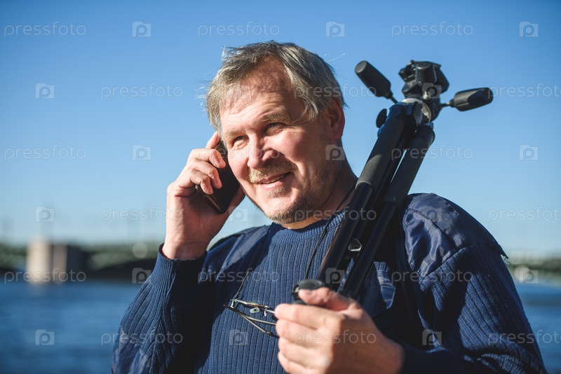 Видный мужчина идет по набережной