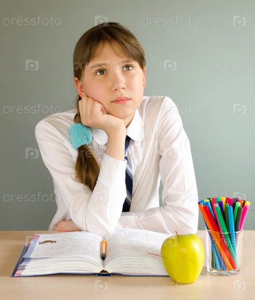 Девочка-подросток сидит за партой в классе