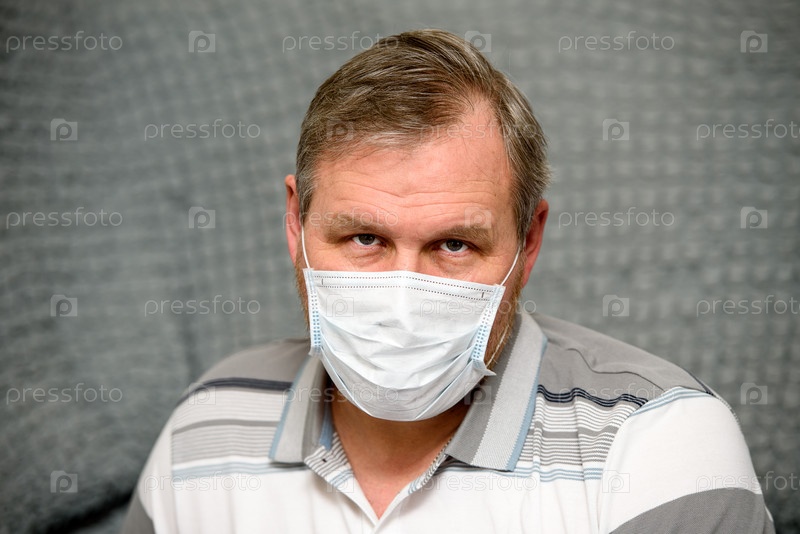 Мужчина в медицинской маске, карантин и самоизоляция — усталый взгляд на лице