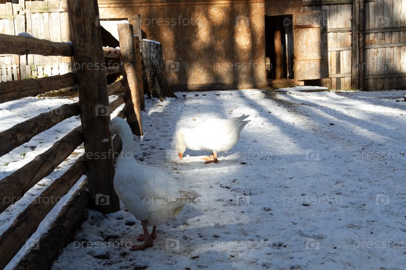 Несколько гусей на ферме