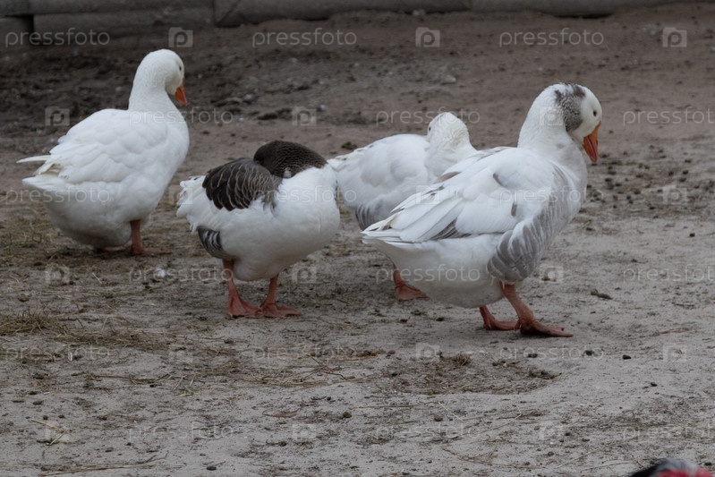 Несколько гусей на ферме