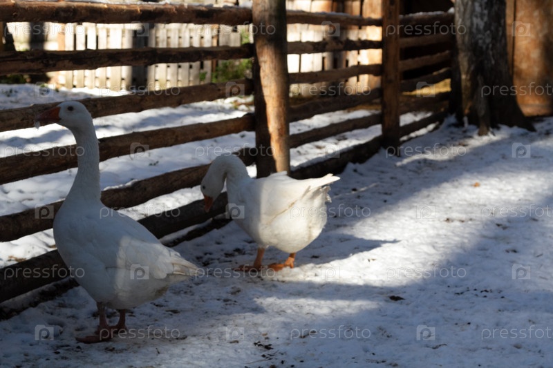 Несколько гусей на ферме