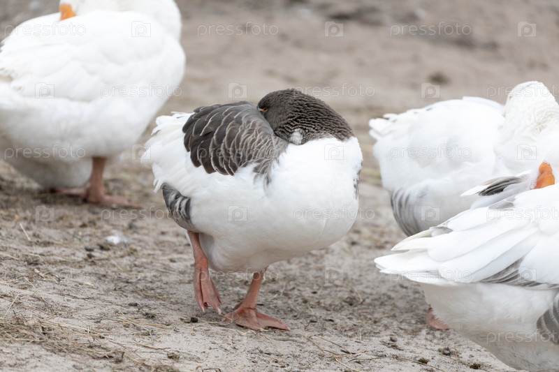 Несколько гусей на ферме