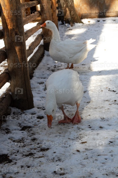 Несколько гусей на ферме