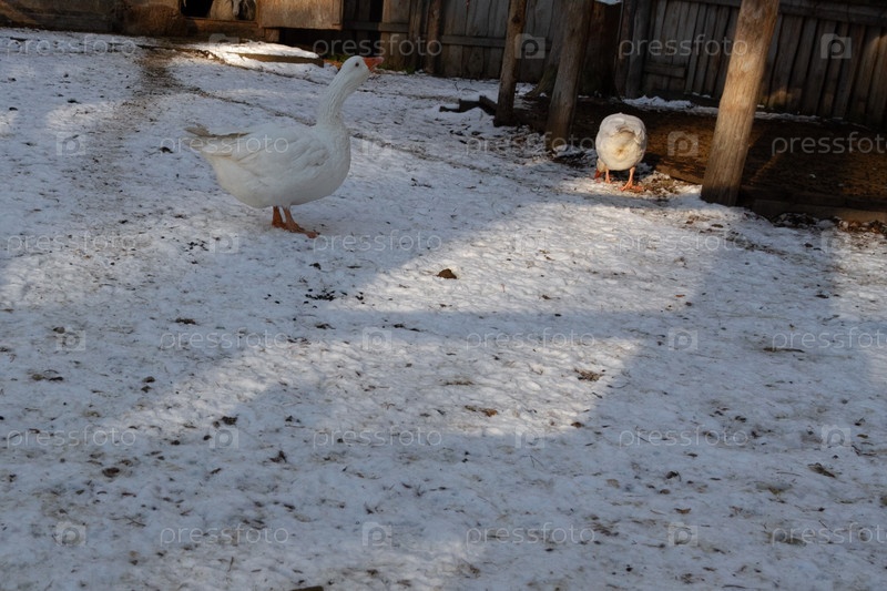 Несколько гусей на ферме