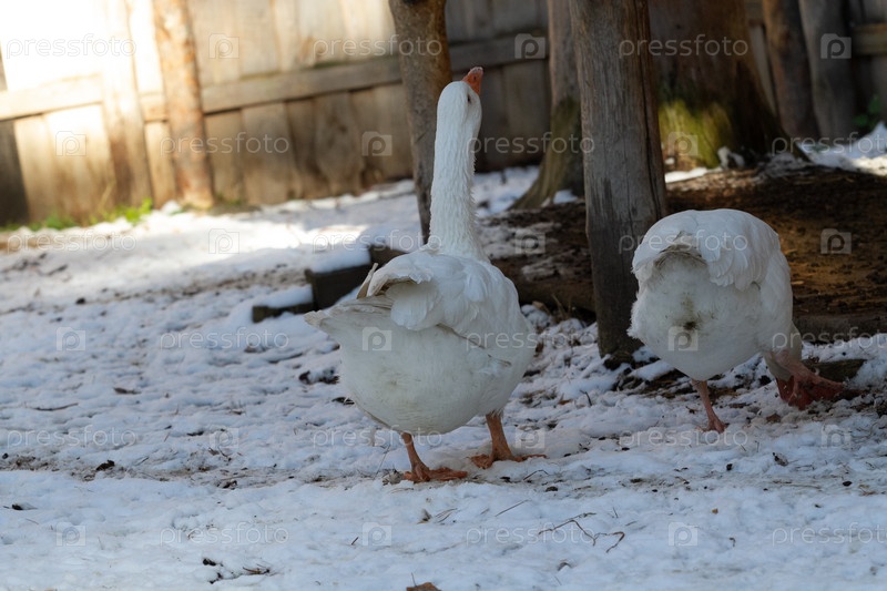 Несколько гусей на ферме