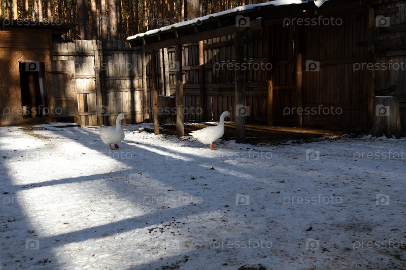 Несколько гусей на ферме