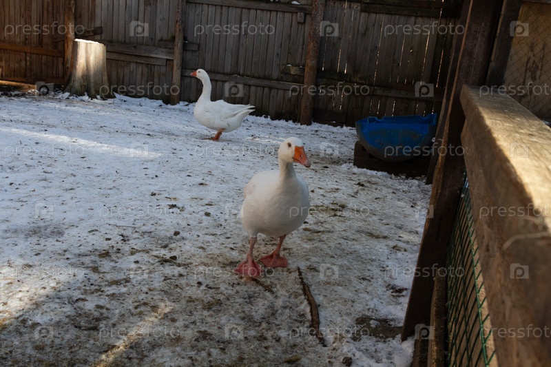 Несколько гусей на ферме