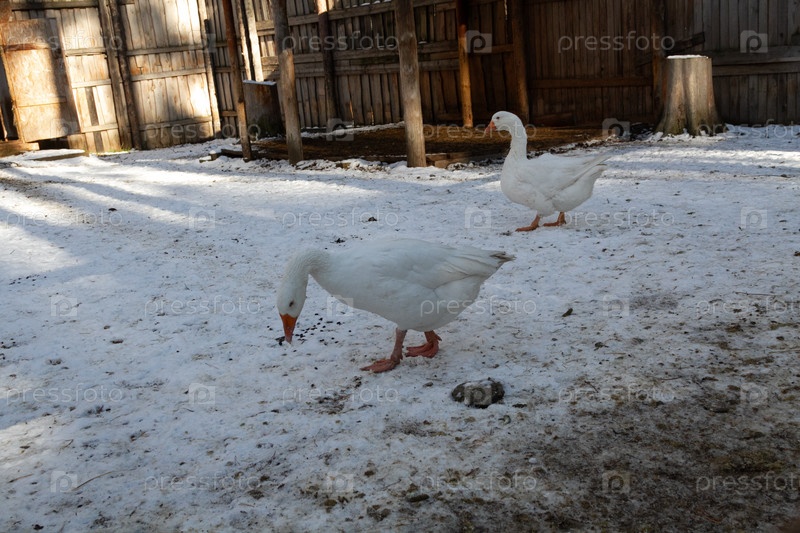Несколько гусей на ферме