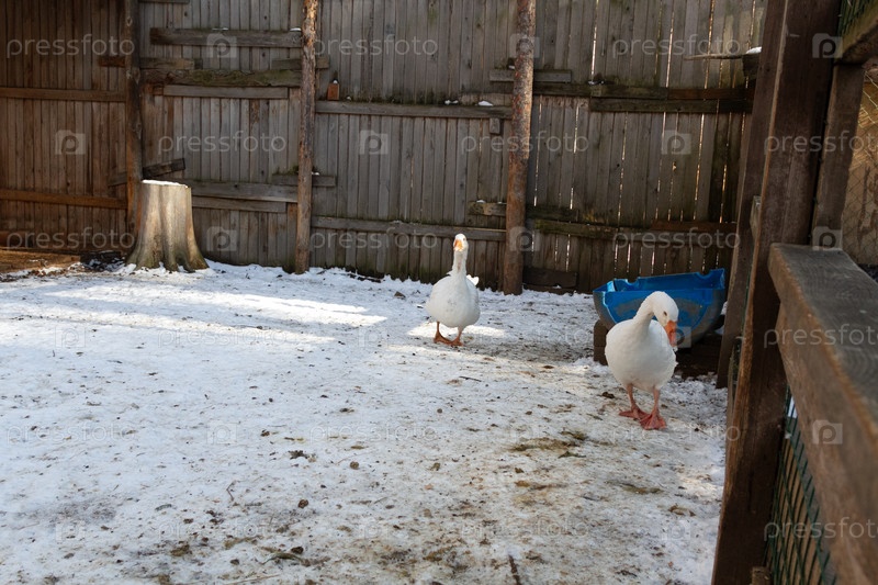 Несколько гусей на ферме