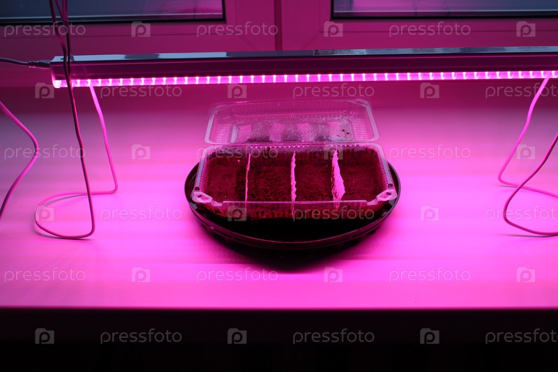 Садоводство в квартире, проращивание семян под фиолетовыми фитолампами