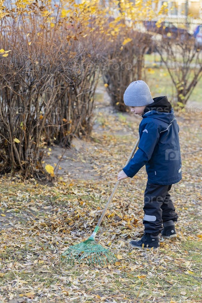 Россия. Санкт-Петербург. Ребенок в детском саду убирает листья. Россия. Петербург. Ребёнок в детском саду чистит листья