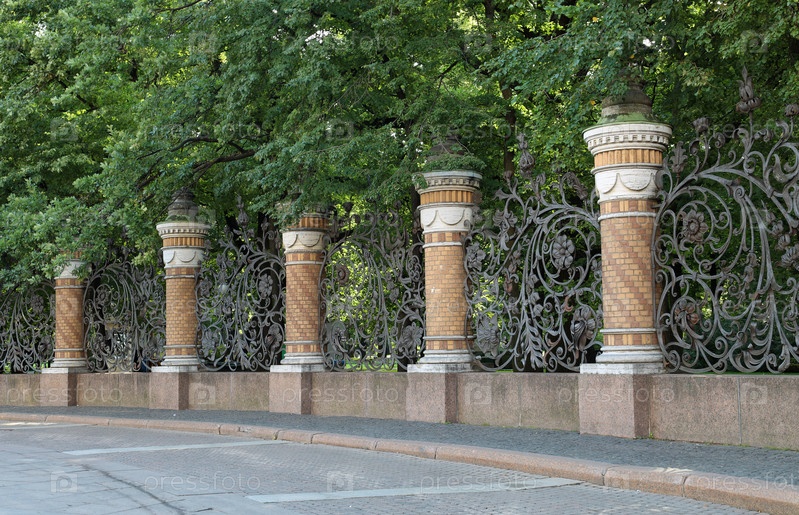 Кованая узорчатая ограда Михайловского сада в Санкт-Петербурге, Россия