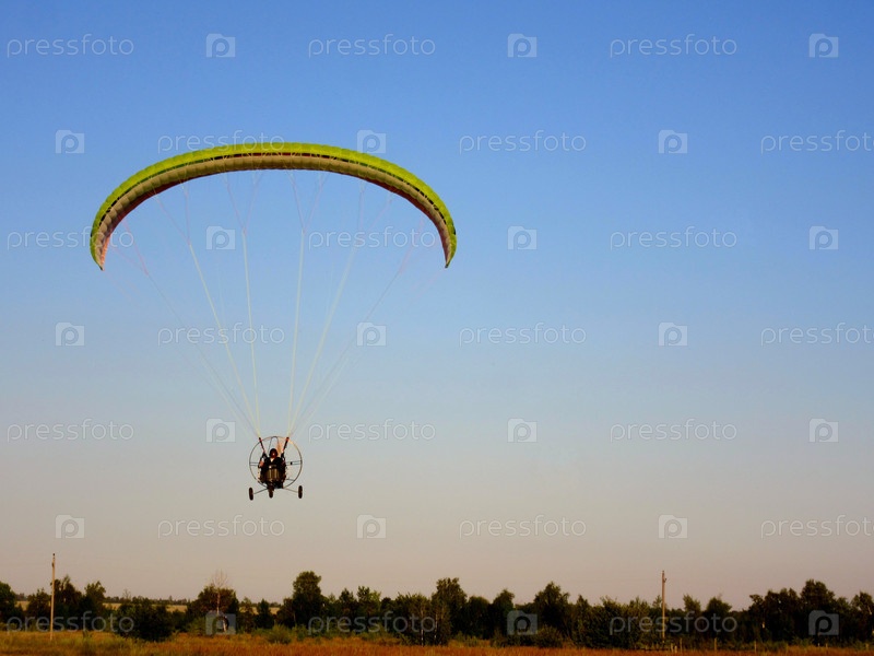 Моторный параплан идет на посадку