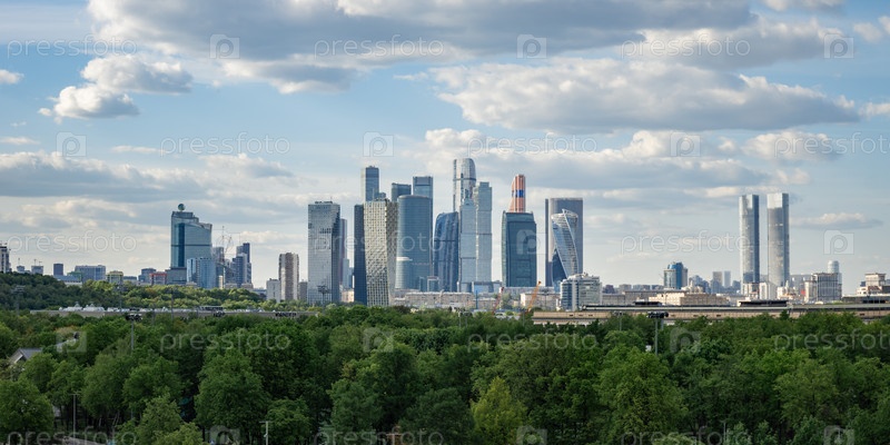 Вид на небоскребы Москва-Сити в сумерках