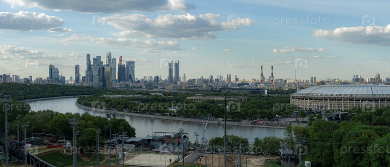 Вид на небоскребы Москва-Сити в сумерках