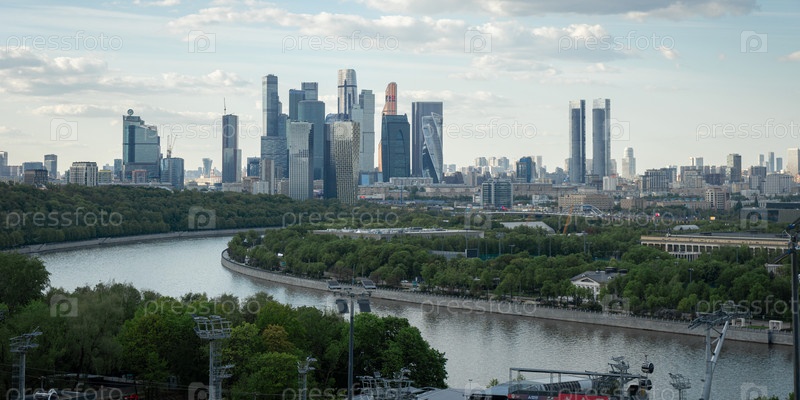 Вид на небоскребы Москва-Сити в сумерках
