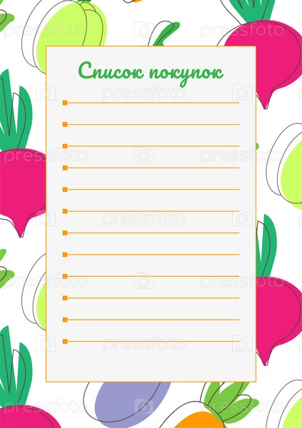Шаблон списка покупок с рисунком из овощей