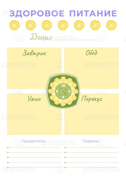 Планер ежедневного питания. Вертикальный шаблон формата А4