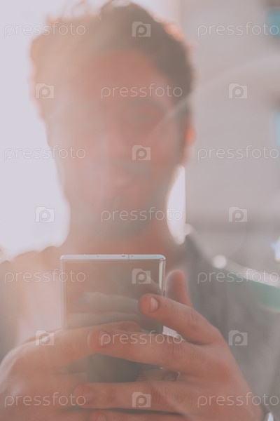 Молодой человек использует свой смартфон на открытом воздухе, демонстрируя органичную интеграцию технологий и мобильности в современную профессиональную жизнь