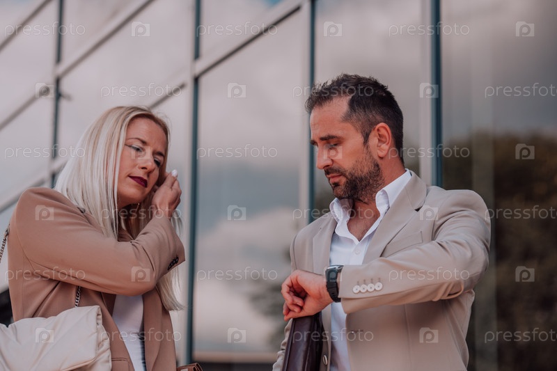 Современная деловая пара после долгого рабочего дня вместе направляется к своему уютному дому, воплощая идеальное сочетание профессионального успеха и личного удовлетворения