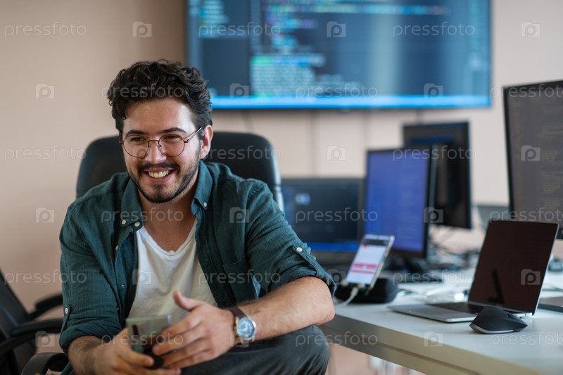 Программист усердно тестирует приложения для смартфонов