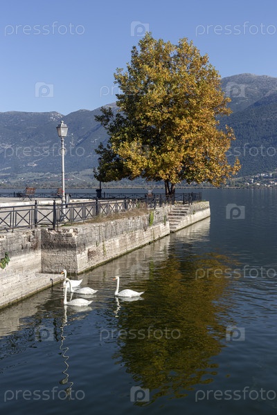 Набережная города Янина (северо-западная Греция) у озера Памвотис